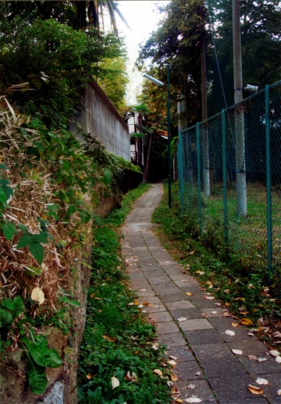 A narrow path runs inconspicuously alongside a fence beside a park. It is a nostalgic path that makes you want to follow it to see where you can get to.