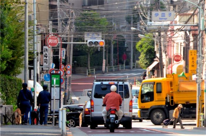 Isarago intersection, which is the junction of Gyoranzaka and Isaragozaka. This location is a mix of complex topography, and when you look upward the complexly intertwined power lines, telephone lines, communication lines and other lines look just like resemble spaghetti.
