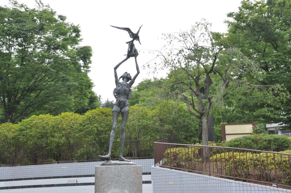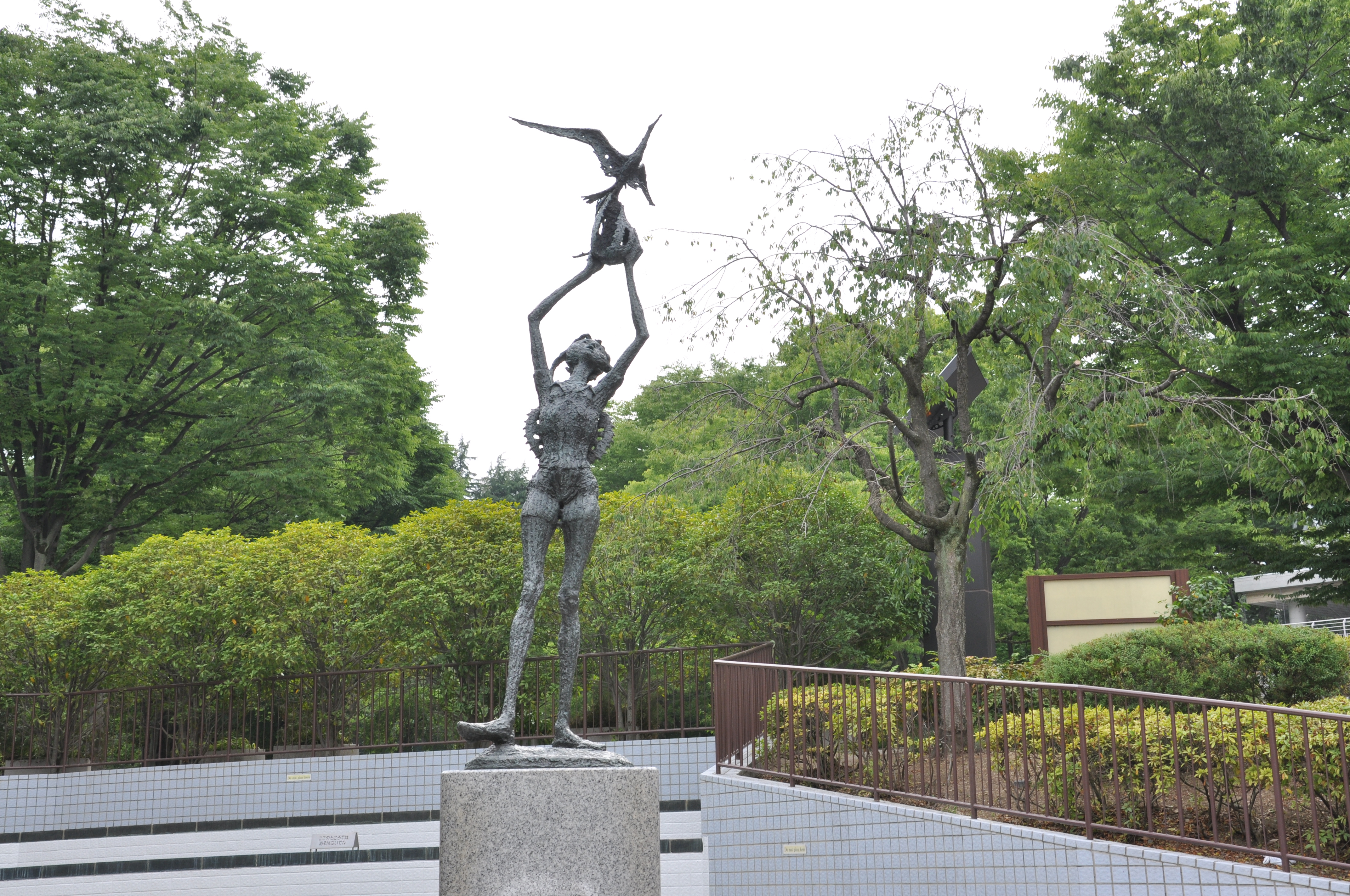 I was enchanted by the delightful statue of a small girl, and also managed to capture it against a well-balanced background formed by the green grove of trees and the sky.