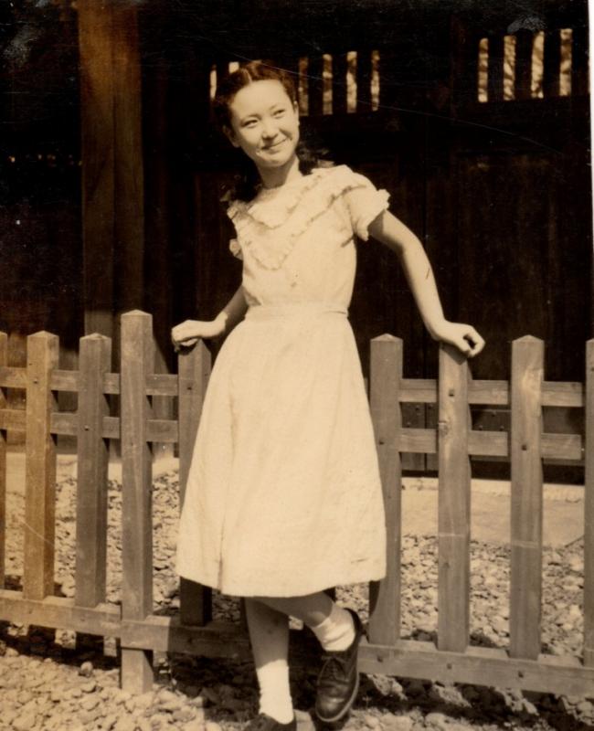 A shot from the mid-1940s to mid-1950s showing my sister’s friend in front of the black gate at the Takanawa Imperial Residence (former residence of Prince Takamatsu).