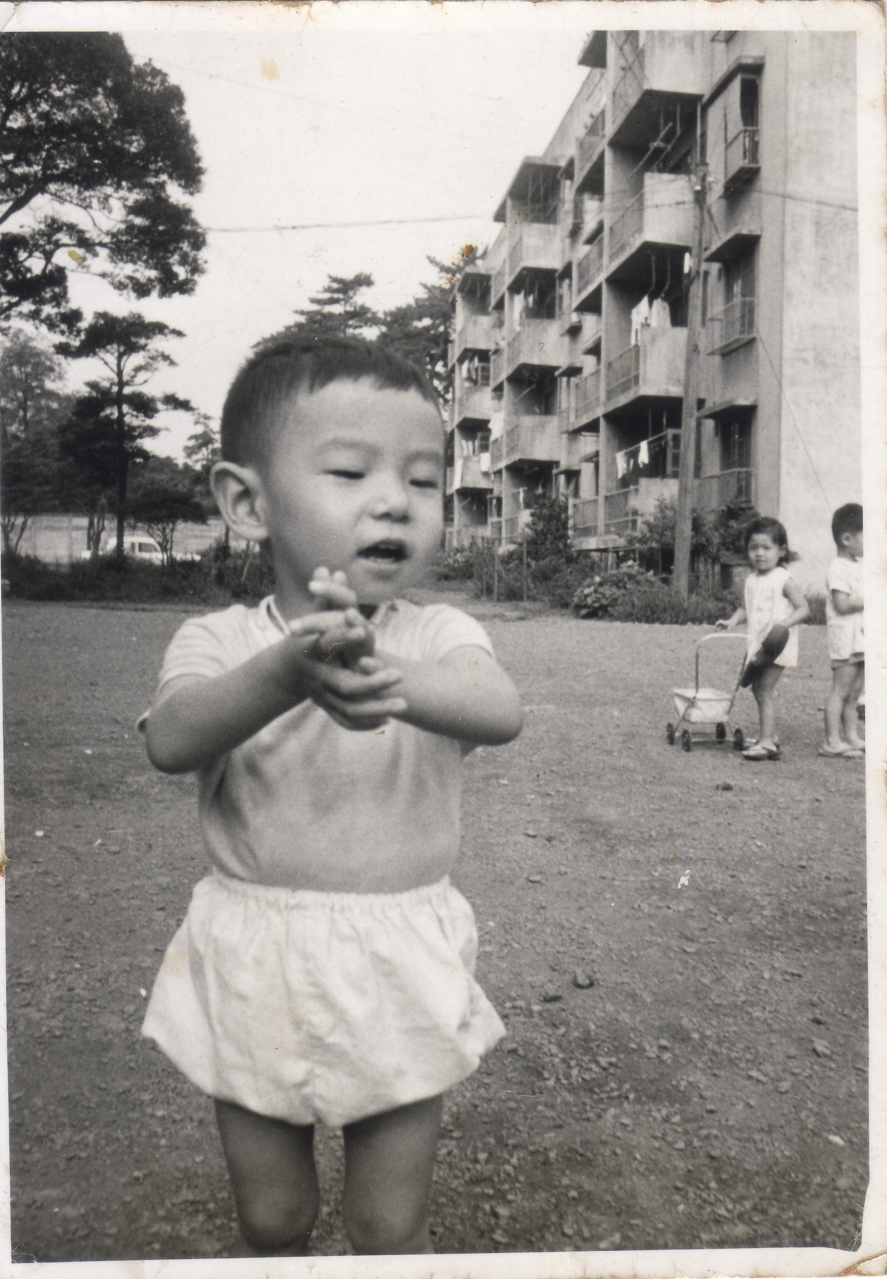 A photo showing my eldest son in front of the former Kanto Finance Bureau’s public servant housing complex (currently Shirokanedai Donguri Children's Playground).