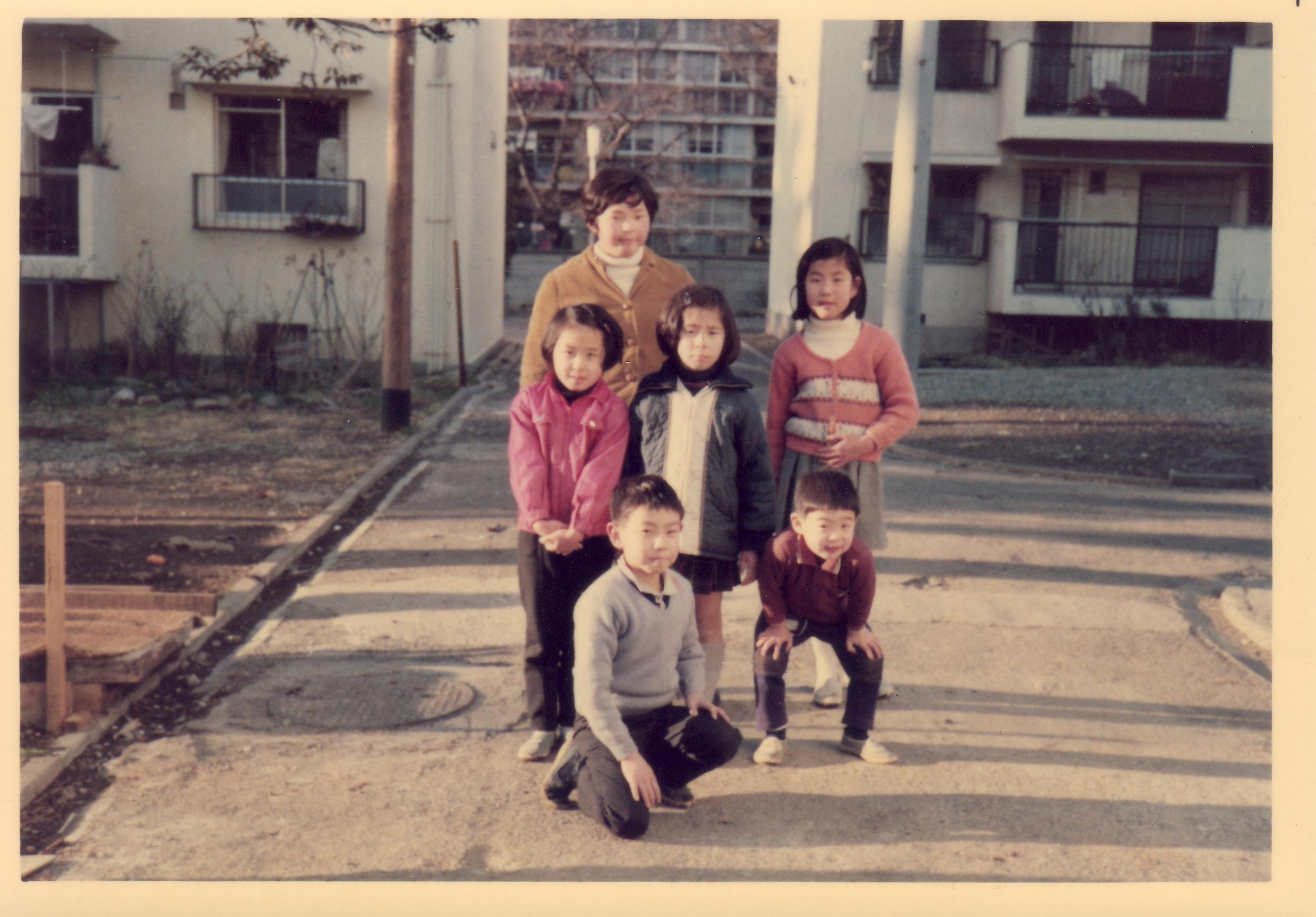 A photo of my eldest son, cousins and neighborhood children taken in front of the former Kanto Finance Bureau’s public servant housing complex.