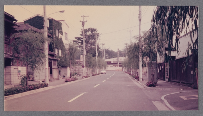 A lane that head towards Tozenji from Dai-ichi Keihin Kokudo. Where the car is stopped in the center left is now the location of Takanawa Park. Tozenji is at the front, and the entrance to the temple at the time was around the corner on the right.