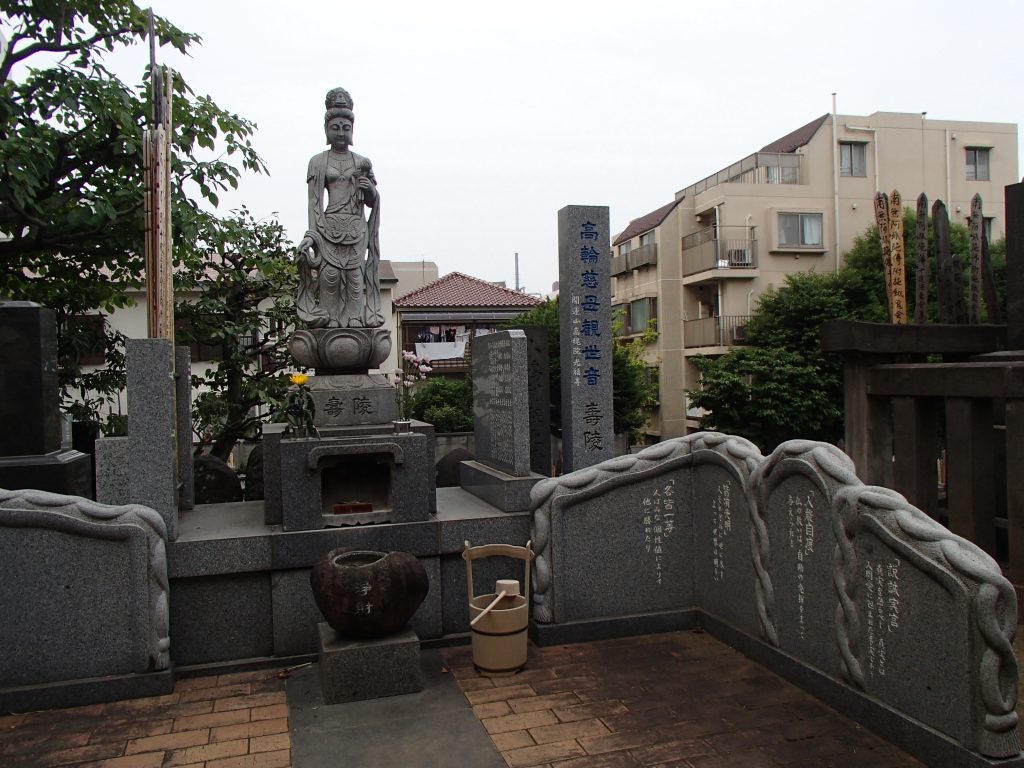 Comparing the Buddhist statue at a temple (Kofukuji) on the elevated area of Takanawa, and the housing building in the background. The "Ghost Buddha" statue installed here is said to raise the children of deceased mothers, and it is currently worshiped as the guardian Ksitigarbha of childbirth.