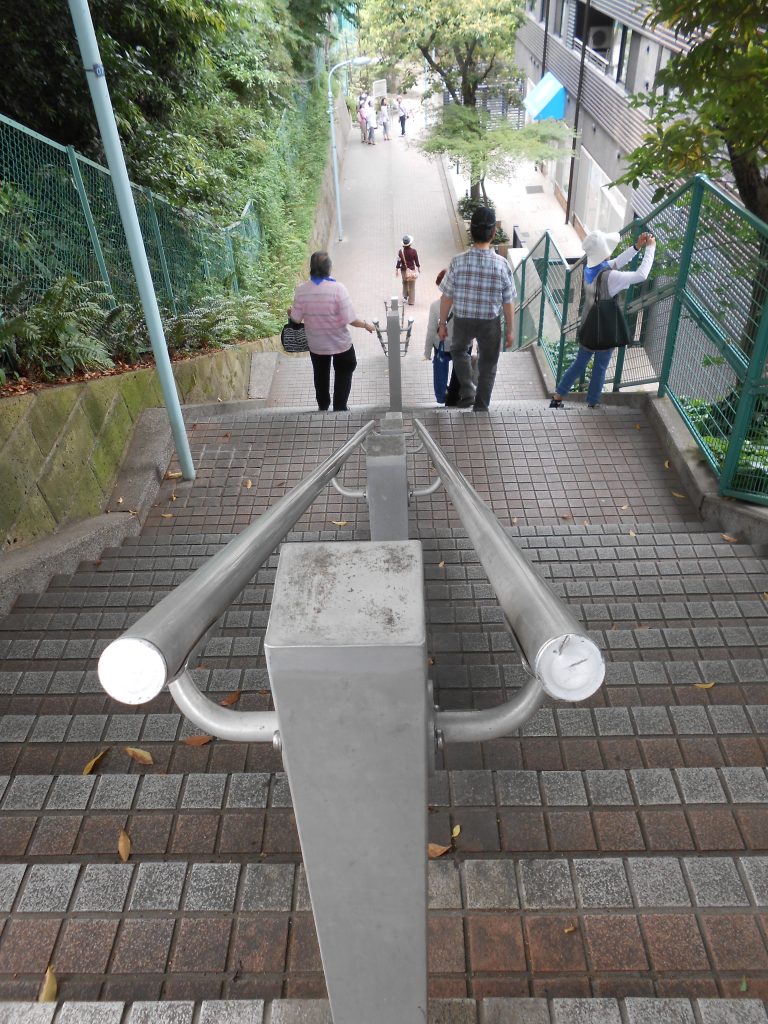 Takanawa 3-chome. Stairs bathed in lush greenery that connect the Prince Hotel to Takanawa Park.