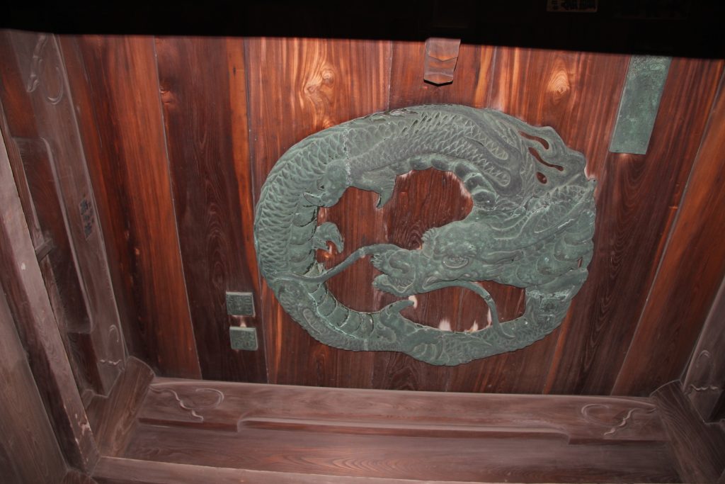 Please look up at the ceiling of Sengakuji’s main gate. It is inlaid with a copper-engraved dragon.