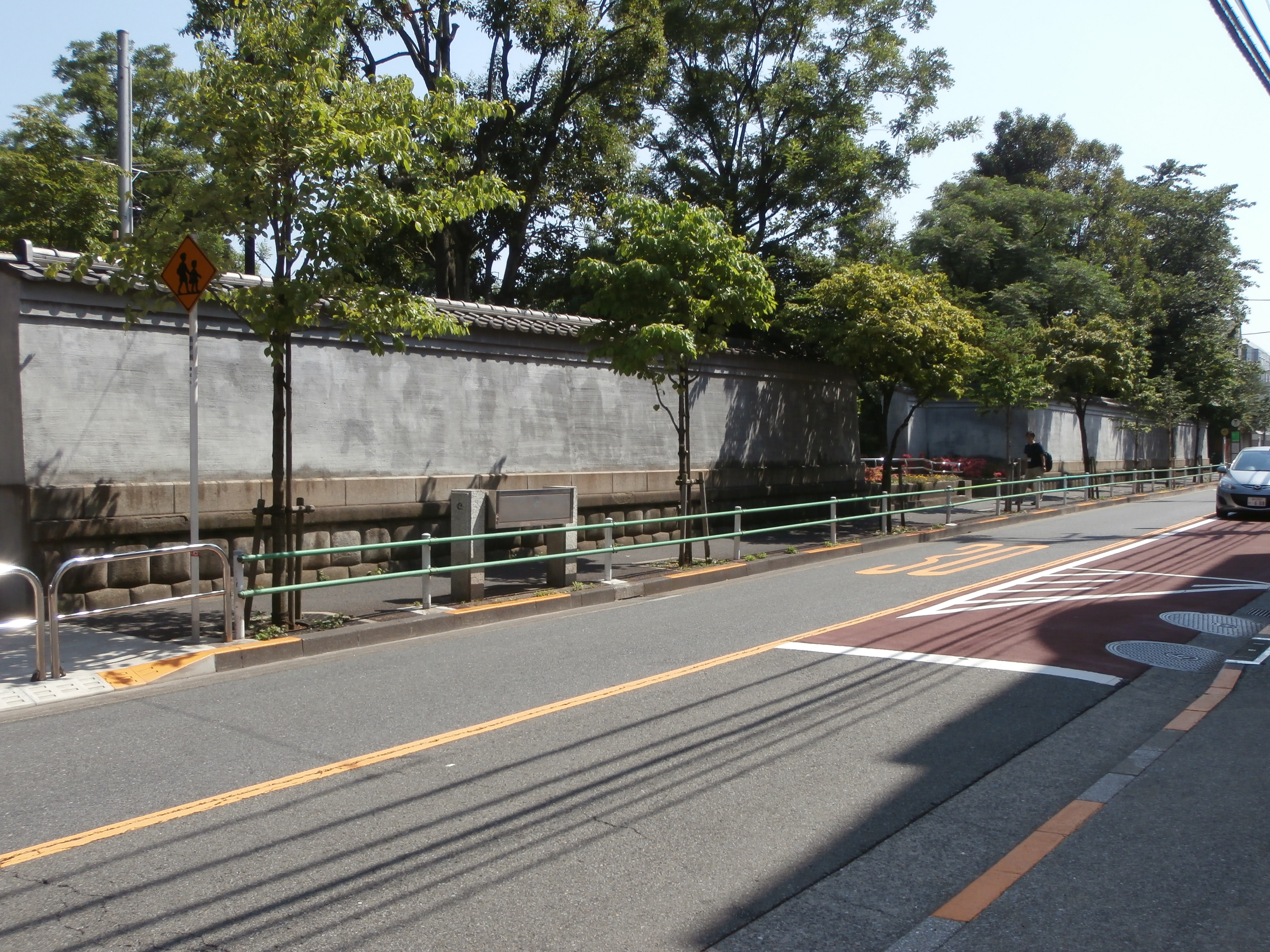 The outer wall at the former site of an Imperial prince’s home, from the Kacho no Miya residence era