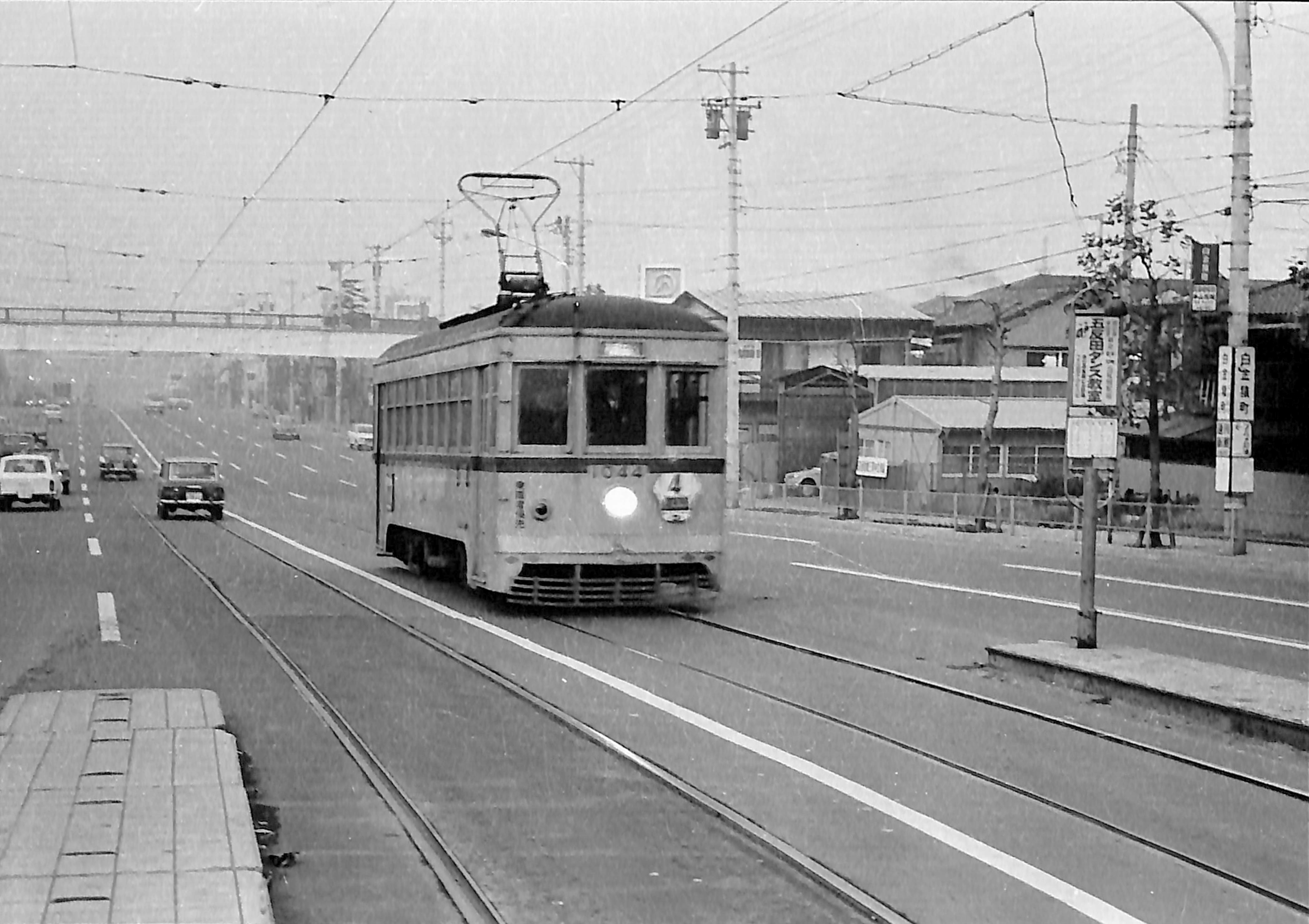 Sakurada Street (National Route 1) was widened for the Olympics. At the time, it just felt wide like a runway. Line 4 used dedicated short-length Model 1100 vehicles. The streetcar is bound for Gotanda.