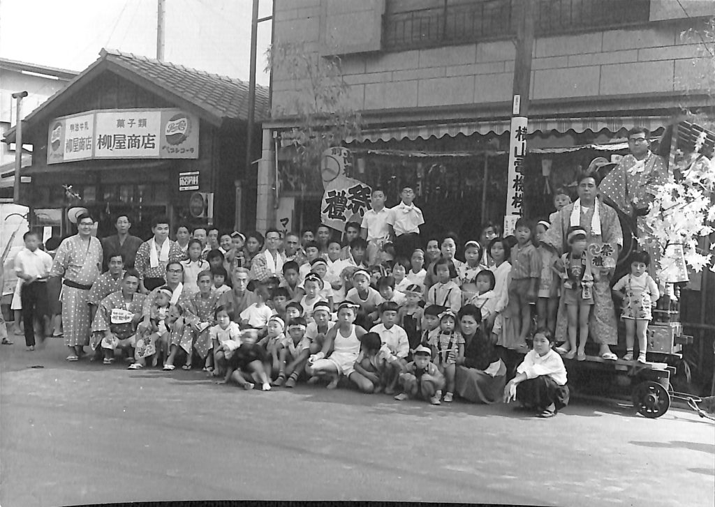 Photographed near the entrance to Hikawa Shrine. Festival float and group photo. The buildings in the background have also changed greatly now.