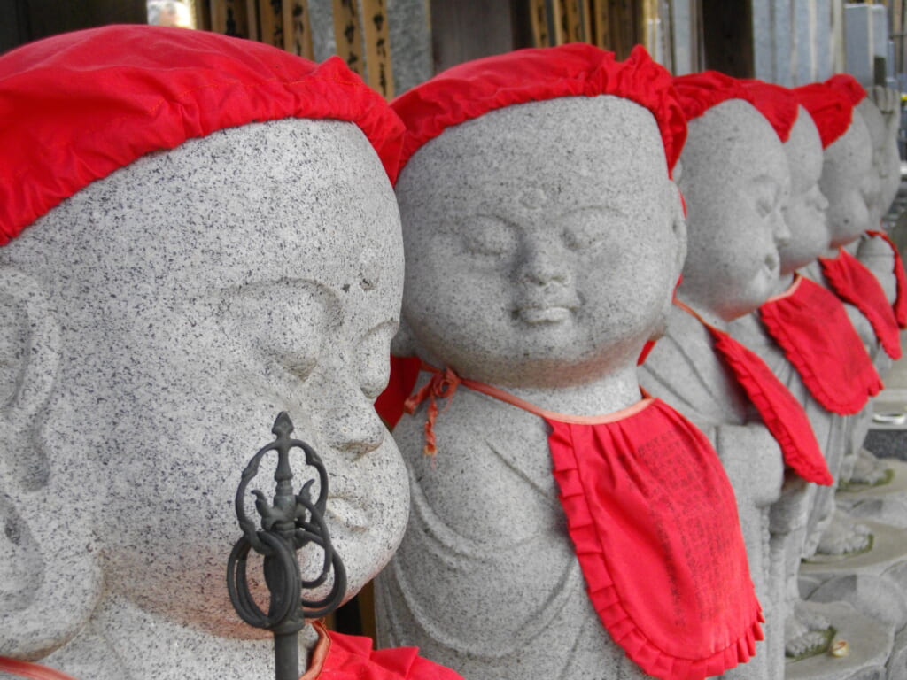 The Jizo statues at Gyokuhouji Temple looked like they were talking due to the tilt of their faces, and were adorable.