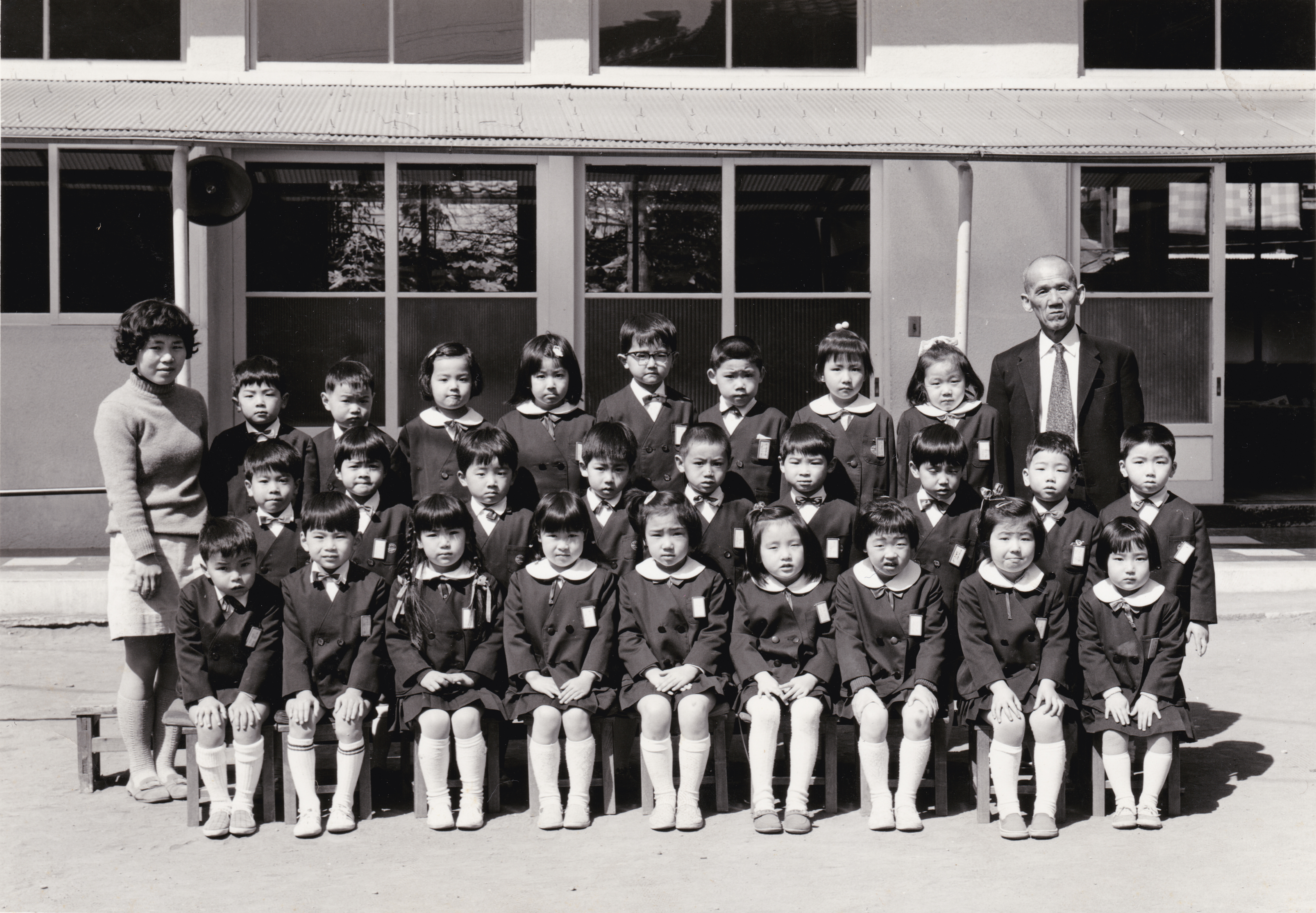 There was a kindergarten inside Gyoranji Temple. It's now closed. This is a photo of the kindergarten graduation ceremony. The man on the far right was the kindergarten principal, the head priest of Gyoranji Temple.