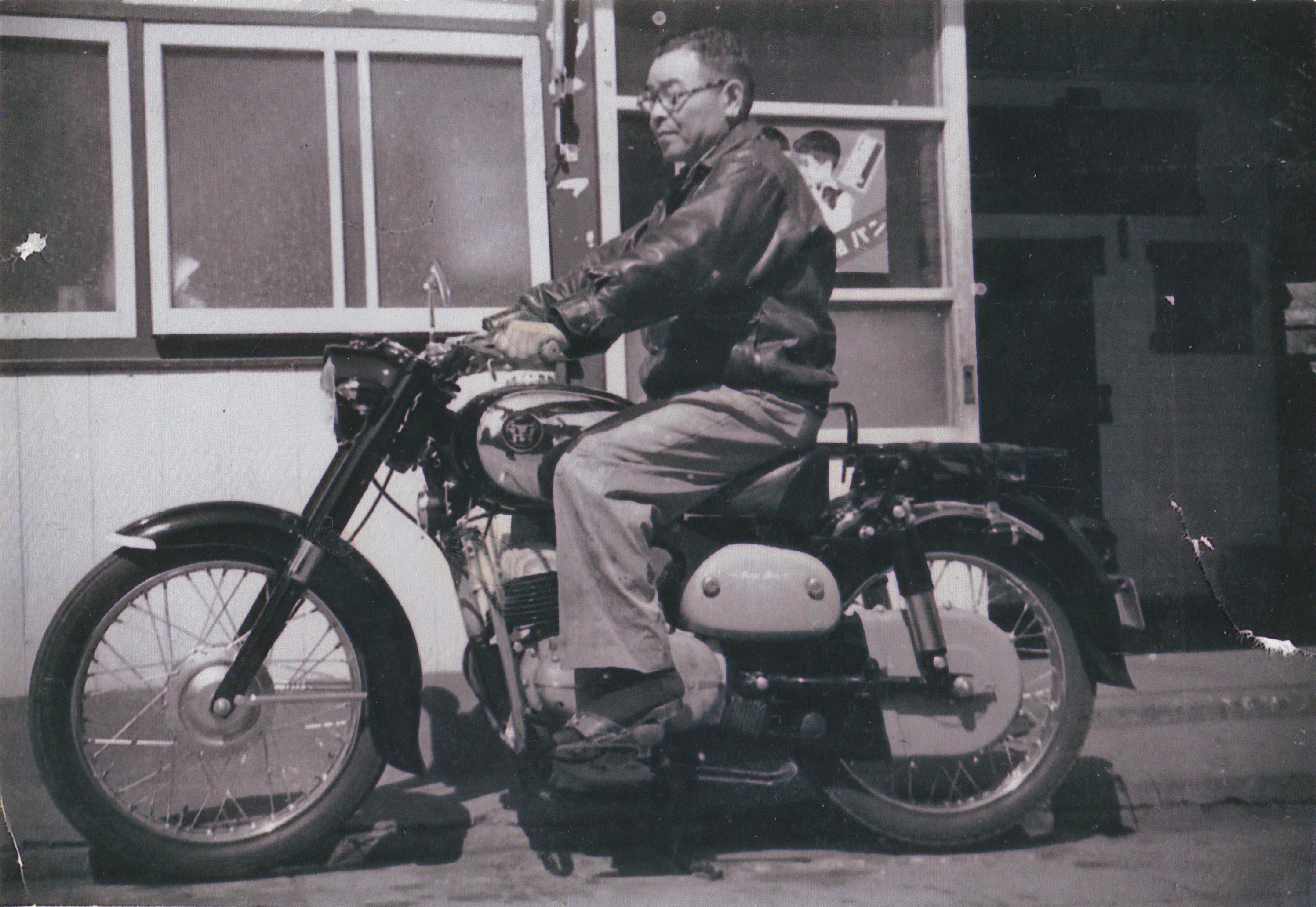 This is my grandfather, who was delivering milk. He was very pleased with the new motorcycle he had bought and took a commemorative photo. After this, he fell and broke a bone.