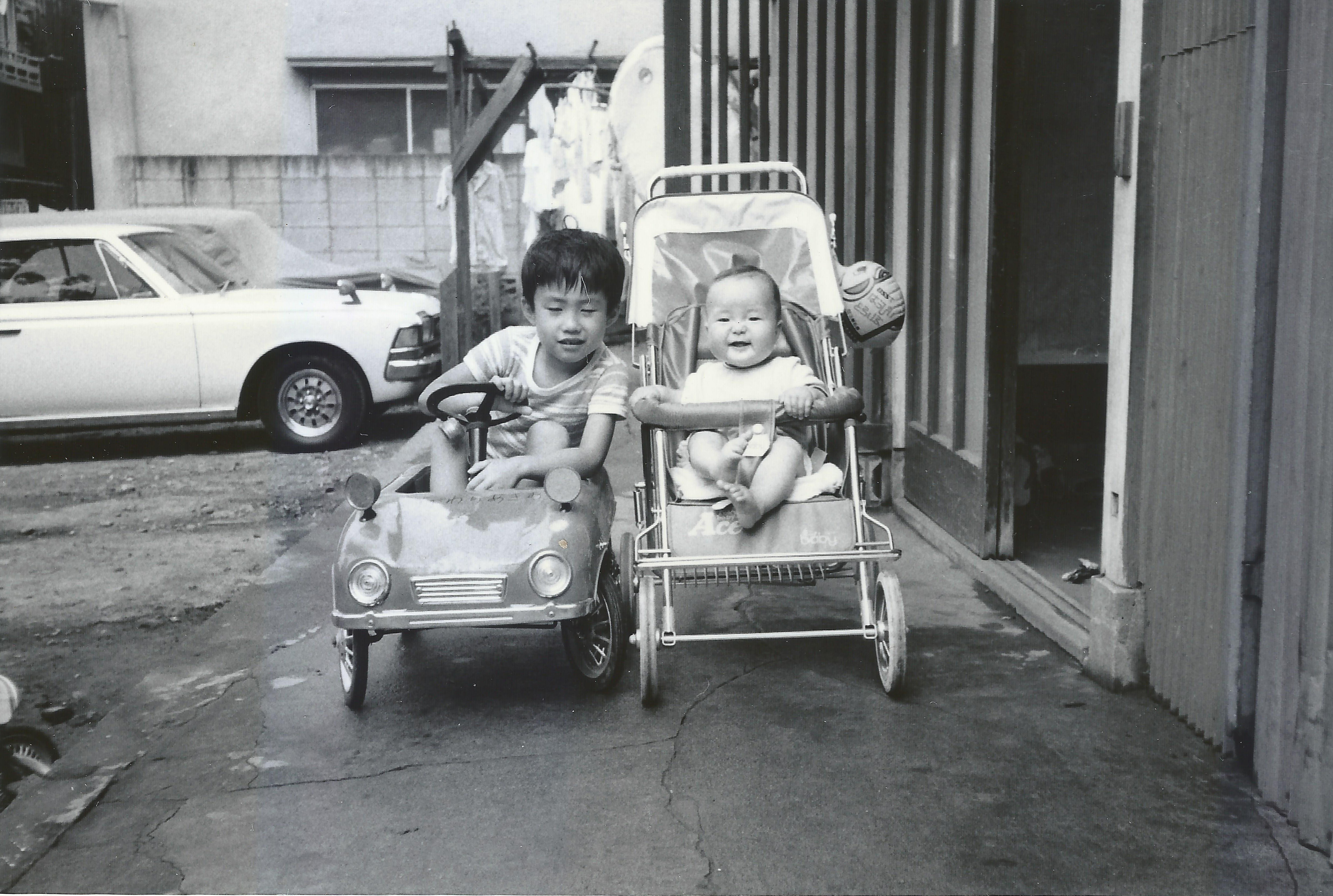 He didn't usually even play with kids his own age but was playing with a small child, so I remember taking this photo saying, "I'll take a picture for you." Children's cars are quite rare nowadays.