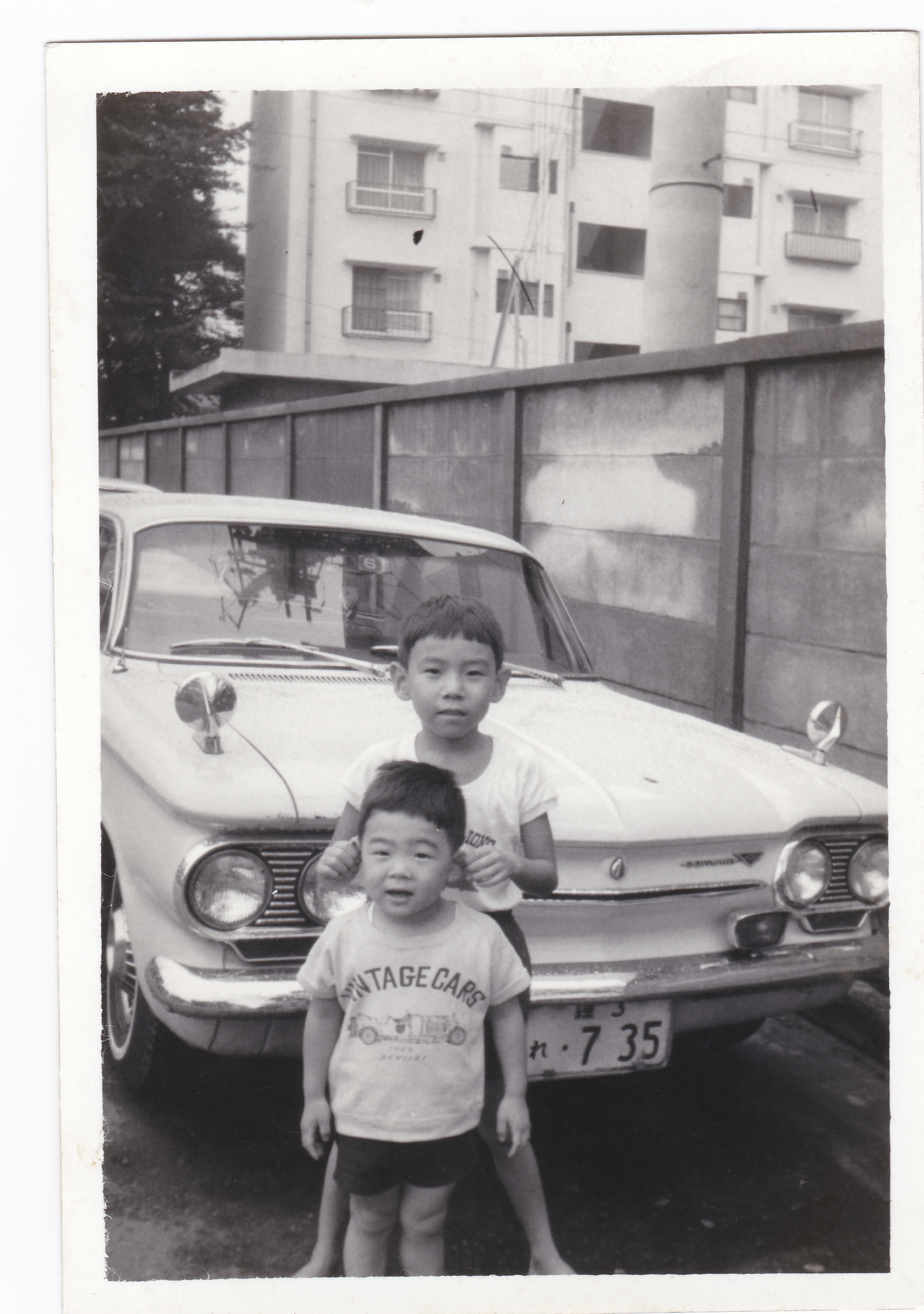 Former Kanto Finance Bureau government employees' dormitory, now the site of Donguri Park. Those in the photo are my sons. The car looks like a Chevrolet.